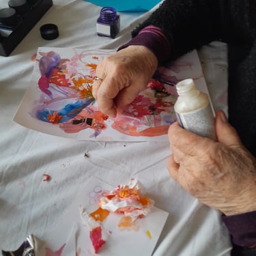Que ce soit pour explorer les encres, le collage ou d’autres médiums, ou lors de séances à thème, l’essentiel reste le plaisir de créer.